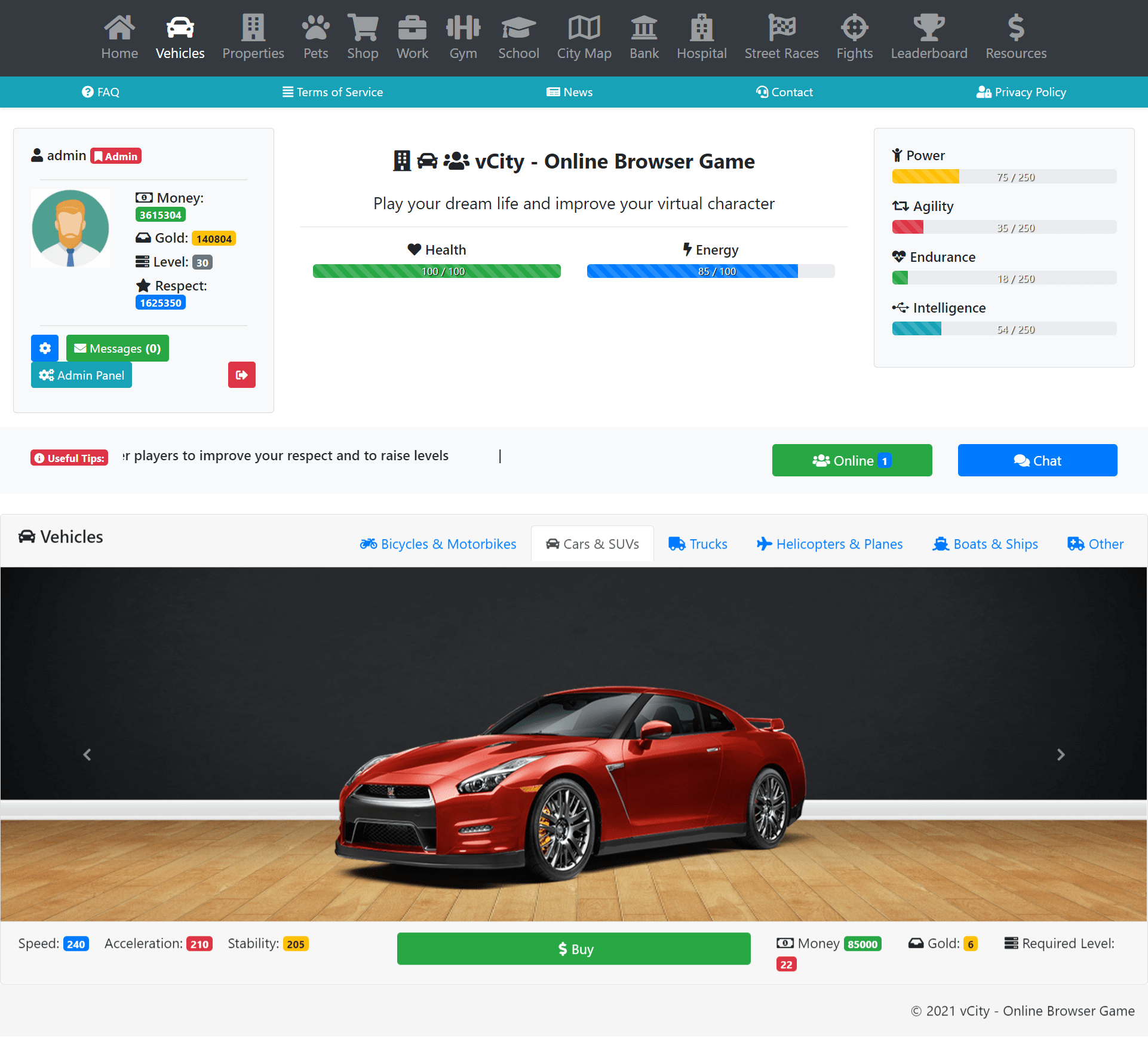 C City is an online browser game in which you can have your own virtual life (make belief). You can buy vehicles, items, properties and you can do many activities. The mayor of Carter City (Mayor Carter B.) pays your virtual Character $500.00 every day to help make your life better! If you do well in this game, you'll more than likely do well in real life! This is not a quick game, it mirrors real life and goes on for days, weeks, and months!